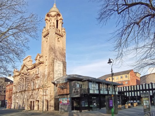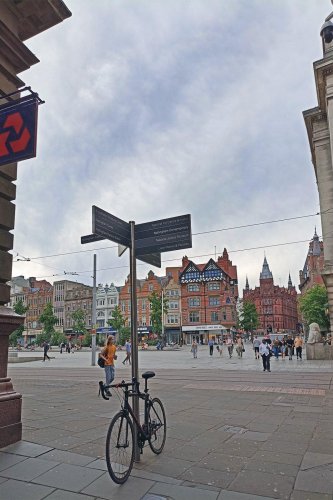Nottingham – is an famous historical city in the centre of England’s Midlands. It’s known for its role in the Robin Hood legend and for the hilltop Nottingham Castle Museum and Art Gallery, what were rebuilt many times since the medieval era. The heart of Nottinham – Old Market Square and historical building City Hall with big dome and clock.
